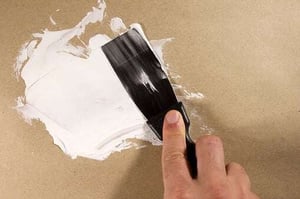 - Wait for the wall to dry completely before applying painter's tape along the edge of the baseboard and other trim. Press it down with your finger or a spoon.